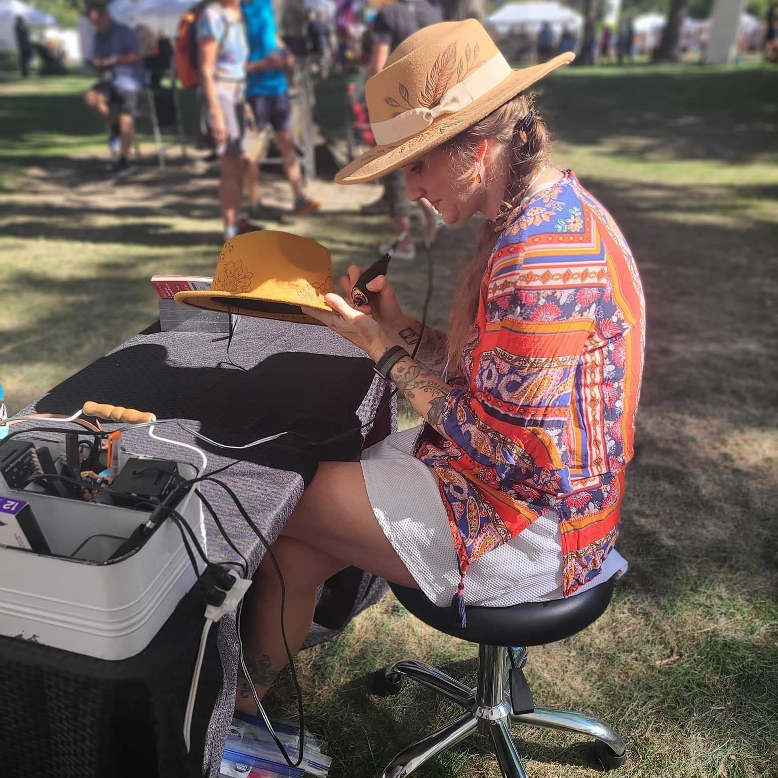 In 2017 I opened my own tattoo studio, River Ink Studio in Garden City, Idaho and started the process of rebuilding. My private, cozy, non-traditional tattoo studio was a huge success and I have had a 6 to 9 month waiting list ever since. The entire world came to a halt in 2020 when the Covid-19 pandemic struck. I was forced to close my tattoo studio, so I packed everything up and moved to the mountains for 3 months. In that time, I published my newest coloring book, Invisible Coloring Book Vol. 1, Flowers, and decided to explore a new medium I had never tried. When you are a tattoo artist it is important to keep your hand in shape. Believe it or not it’s just like being an athlete. I started to learn how to wood burn and completely fell in love. It is the only medium I have found that replicates the techniques of tattooing; you can’t press too hard or too light, you can’t stop while making a line, and you are holding something that is heavy and attached to a cord. There is an amazing bonus with wood burning though, you smell like a campfire when you are done!