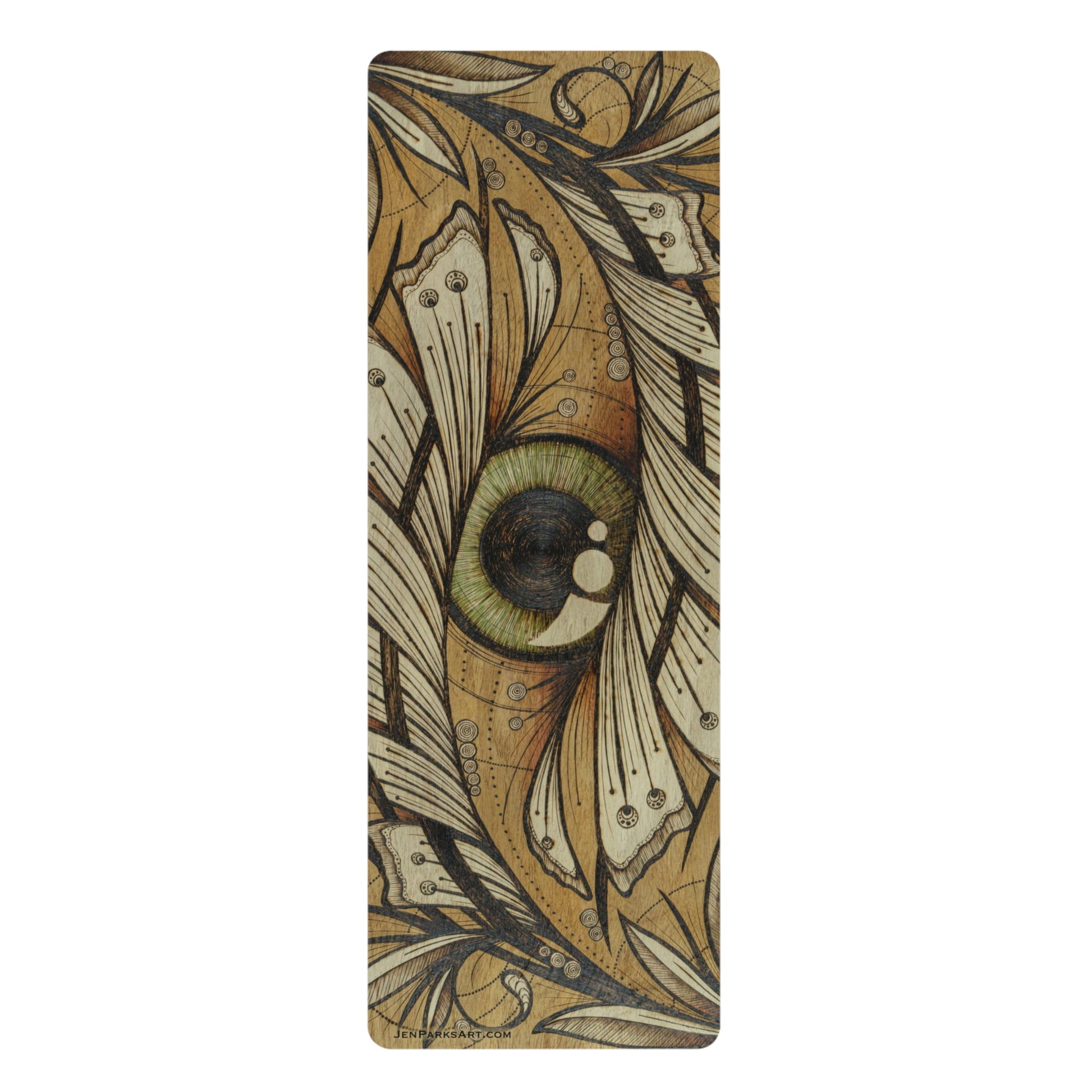 This mat features Jen's original artwork "Eye of the Beheld." This piece was created by using pyrography, alchol markers, and wood stain.