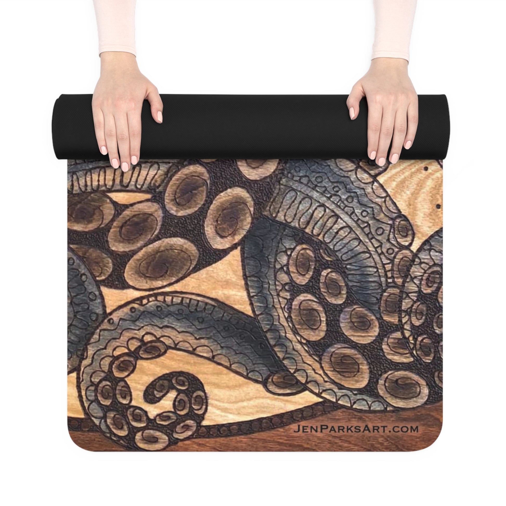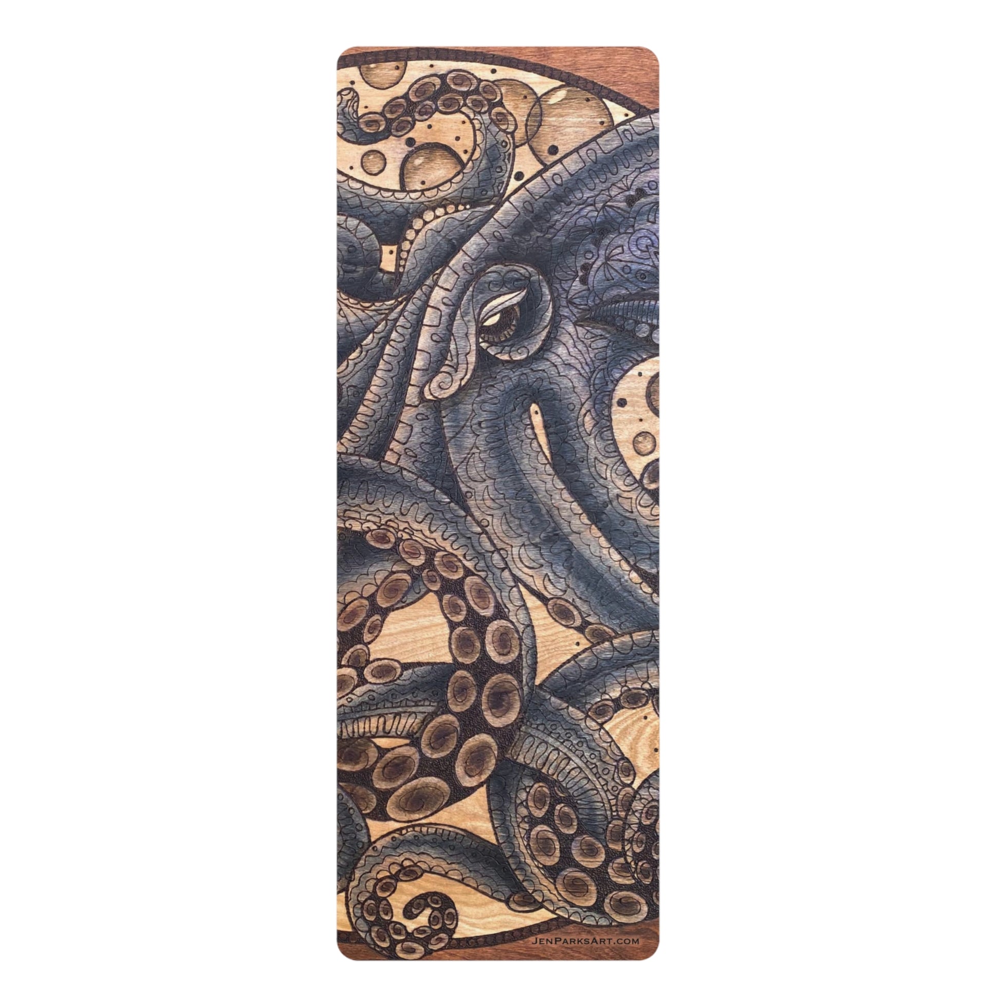 This mat features Jen's original artwork "Octopus" This piece was created by using pyrography, wood stain, and alcohol markers.