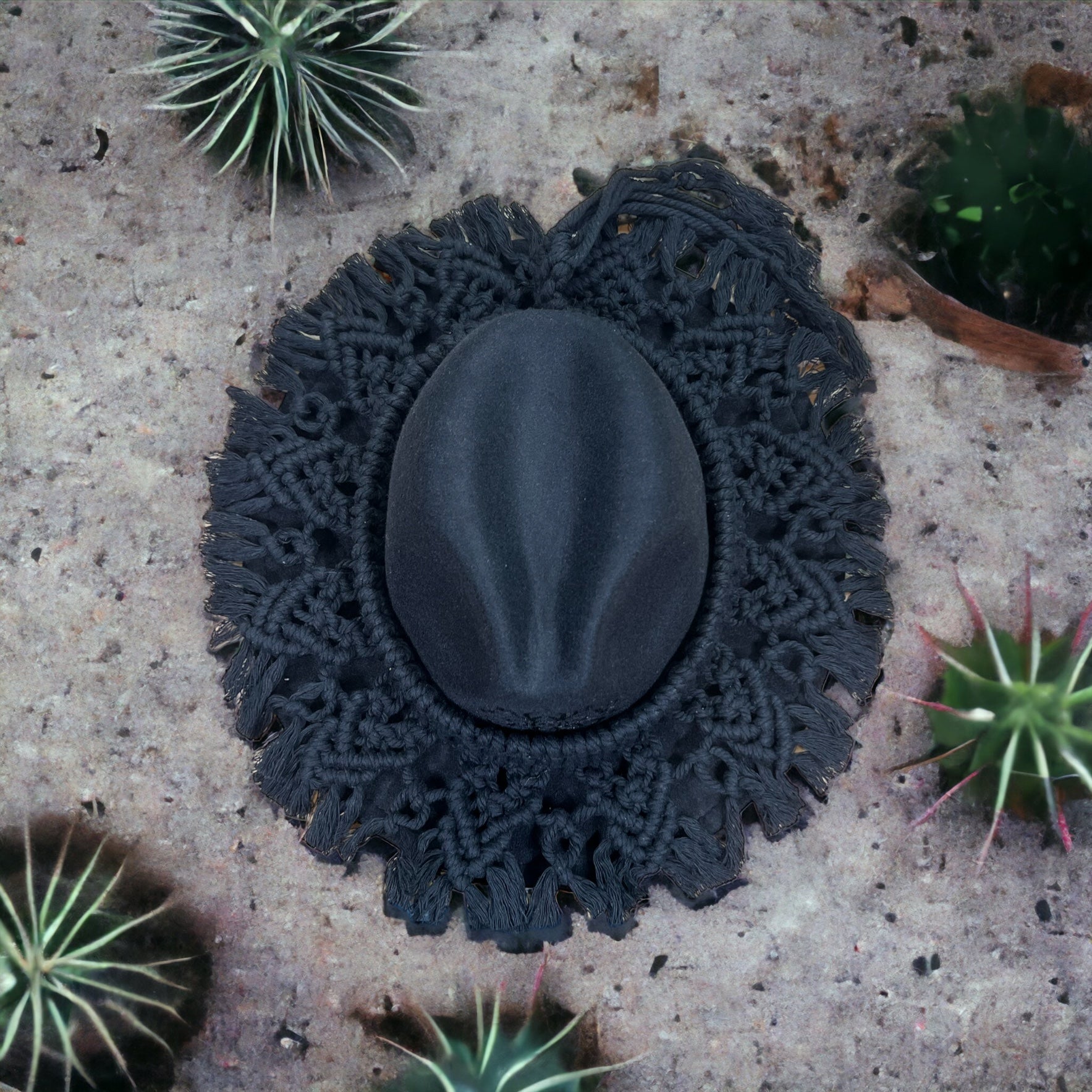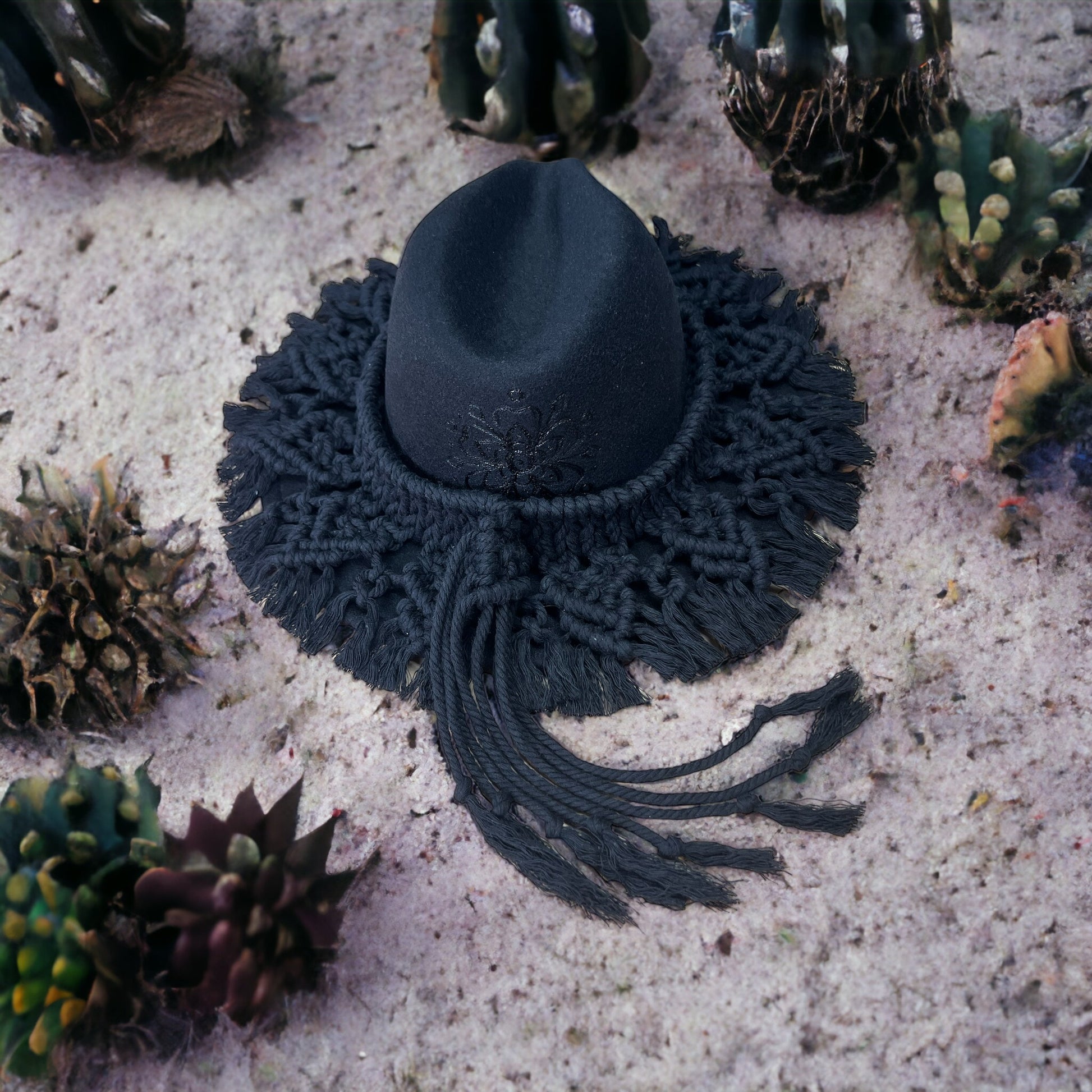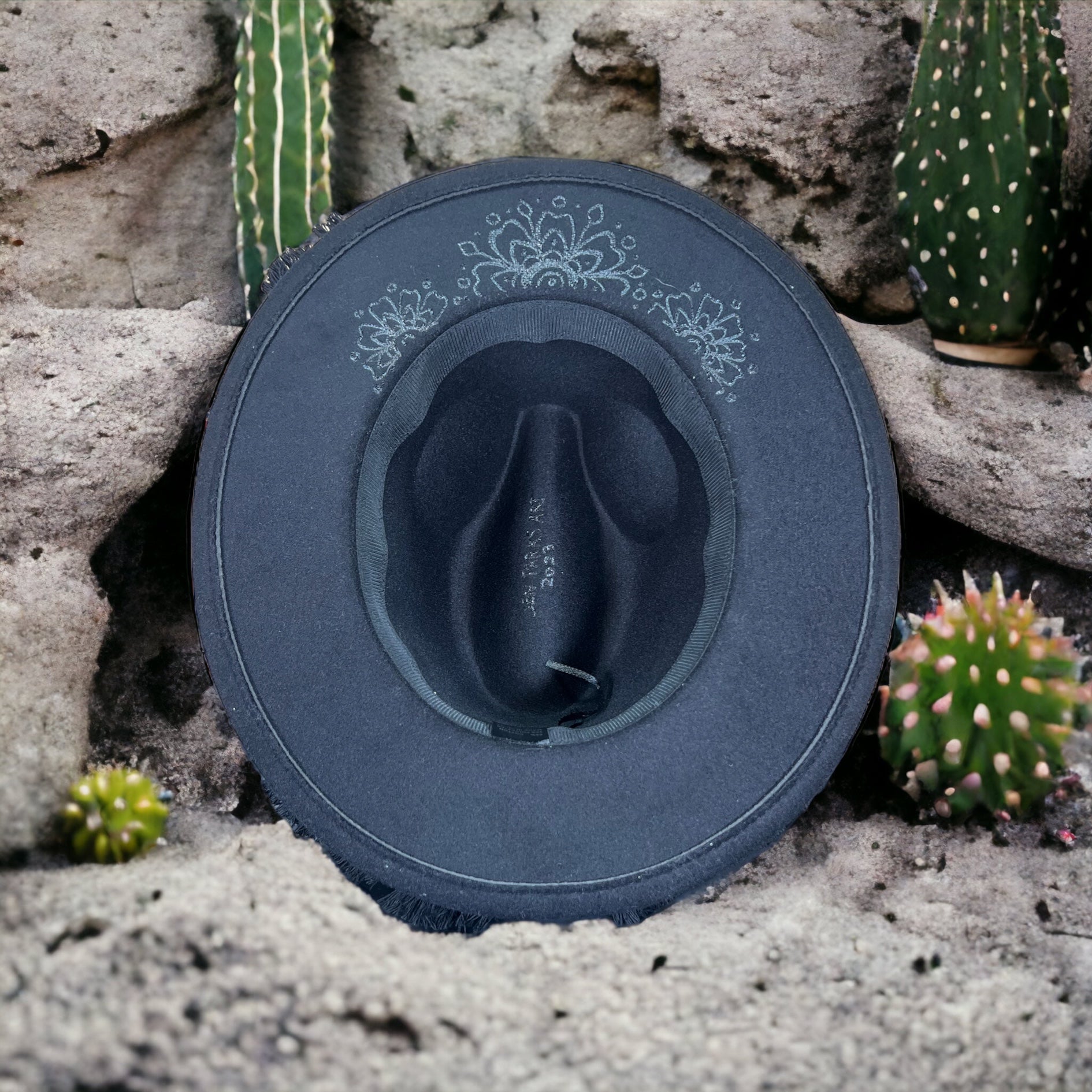 From my hand to your head, each hat goes through a long process of creation, and hours of work goes into just one hat. This is a one of a kind hat, hand burned with Mandala details and a hand made Macramé hat band.