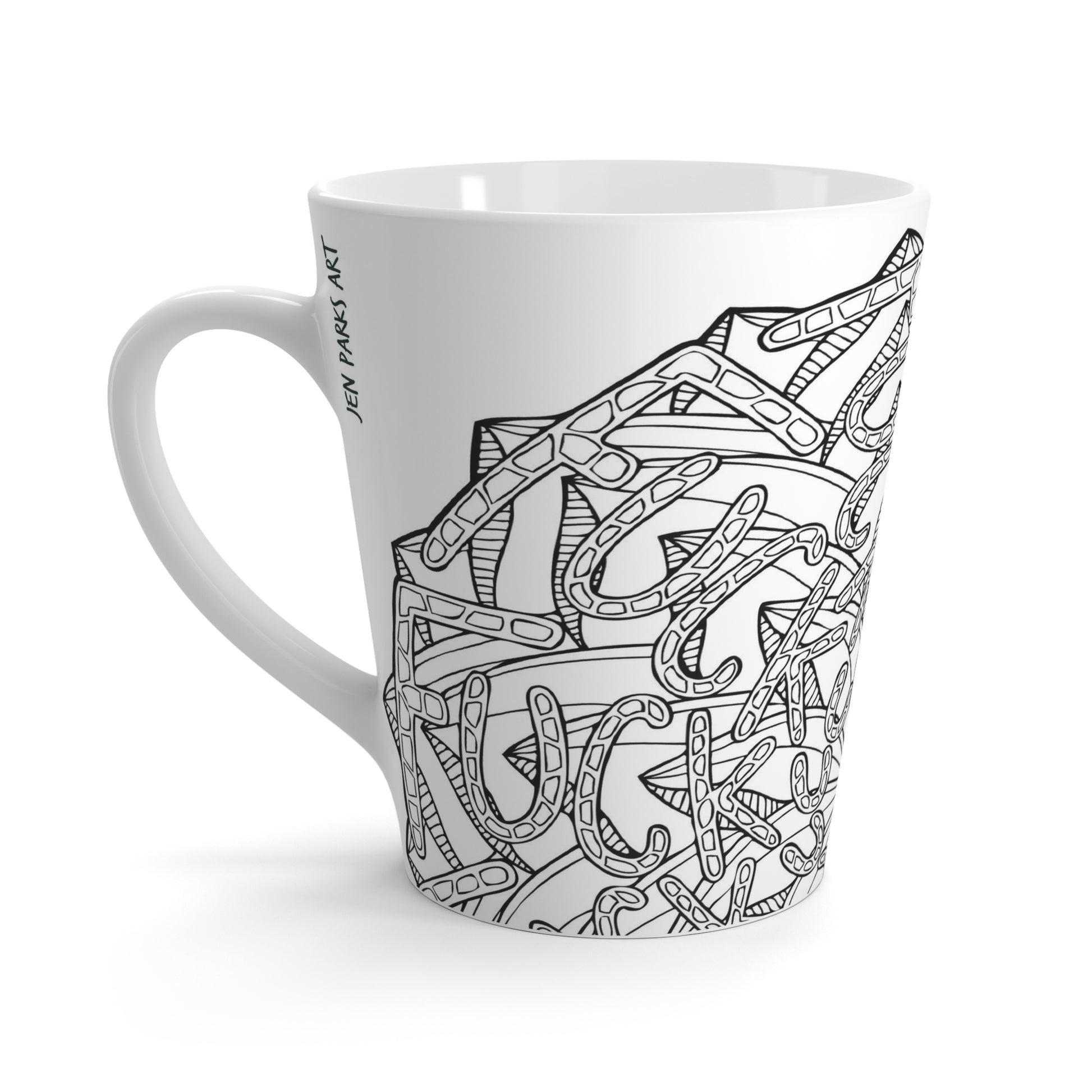 Spike your morning coffee with this naughty and ornate mug. Each mug in this series features original artwork from Jen's "Mandala Mayhem Adult Coloring book". If you would like to check this book out click the Coloring Book link on this sites homepage.